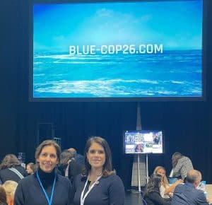 Blue Marine reminded COP26 negotiators of the ocean’s role in mitigating against the climate crisis with a moving blue carbon seascape showcased on a huge screen in the UN’s Blue Zone cafeteria – being discussed here by HRH Princess Eugenie and Clare Brook, Blue Marine’s CEO. The video was born of Blue Marine’s new interactive web experience, The Sea We Breathe, which submerges the user in an underwater world and connects them to the natural climate solutions of the ocean.