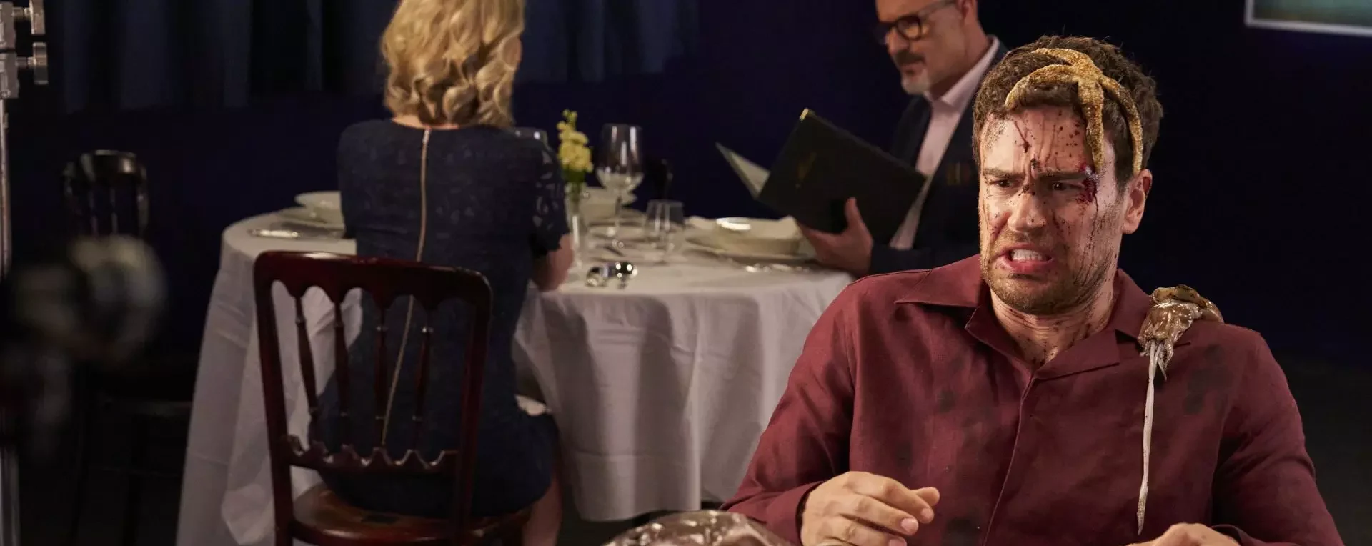 Blue Marine ambassadors Theo James and Stephen Fry star in grotesque new film exposing the impacts of bottom trawling ahead of the United Nations Ocean Conference. TV hunk Theo, 40, has swapped his roles in The White Lotus and The Gentleman as he portrays an unassuming diner at a smart restaurant. As the film opens, he orders a seemingly sustainable fish course, with Stephen Fry playing a head waiter who delivers his dish.